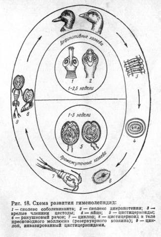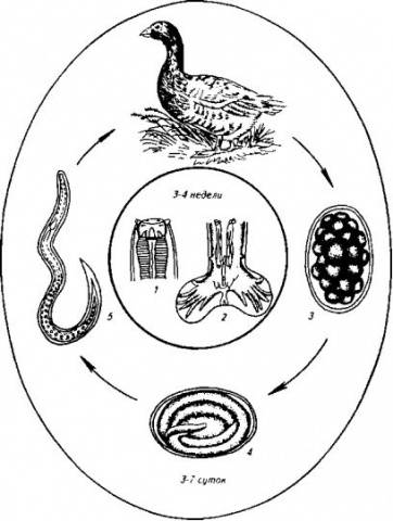 A betegség kórokozója a cestodák egyik típusa. A libák plankton vagy kagyló lenyelésével fertőződnek meg. Cestodával fertőzve kimerültség, elakadás, bizonytalan járás, görcsök, néha a végtagok bénulása és ennek következtében elesik. Folyékony alom kellemetlen szaggal.