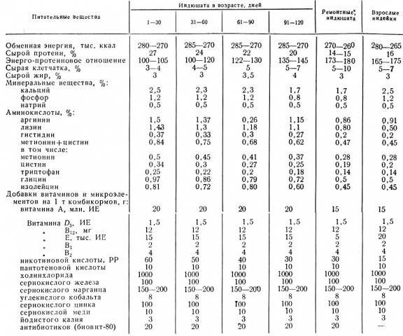 Télen, hogy ne legyen vitaminhiány, hozzá kell adni a takarmányhoz: csalán, fa seprű, zöld széna, tűlevelű vitamin- és gyógynövényliszt, savanyú káposzta. Kombinálhatja a gabonaféléket a hüvelyesekkel. Az étel jobb őrléséhez mészkővel kevert finom kavicsot adnak az adagolóhoz. A gyógynövények, a zöld zöldségek és a száraz koncentrátumok arányának egyenlőnek kell lennie.