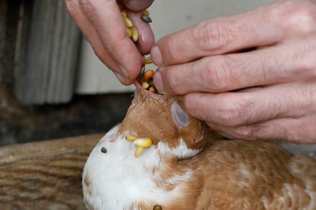 A második héttől kezdve ajánlott egy gabonatömeget bevinni az étrendbe, mivel nagyon hamar a csaj táplálkozni kezd, mint egy felnőtt galamb. Csak takarmány állapotban zúzott és jól megpárolt gabonával érdemes etetni. Ehhez a következőkre lesz szükség: