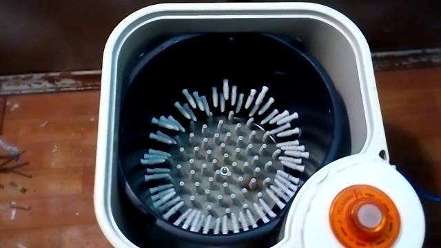 Ezután csak fürjverőket kell vásárolnia, körülbelül 120 darabot, és meg kell tennie az autó alját. Szükség van egy speciális lemez kivágására, amelynek szélessége megegyezik a gép aktivátorával. Ezt követően ebbe a lemezbe lyukakat kell vágni, amelyek átmérője megegyezik a gumicsapásokkal.Marad az ütemek behelyezése a helyére, és az autó alja már majdnem kész. Egy azonos lyuk készül pontosan az aktivátor és a lemez közepén. Csak itt kell elvágnia egy szálat az aktivátorban, ahová a tengely beillesztésre kerül. Tehát összekapcsolhatja a lemezt és az aktivátort szinkronizálásukkal.