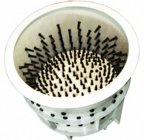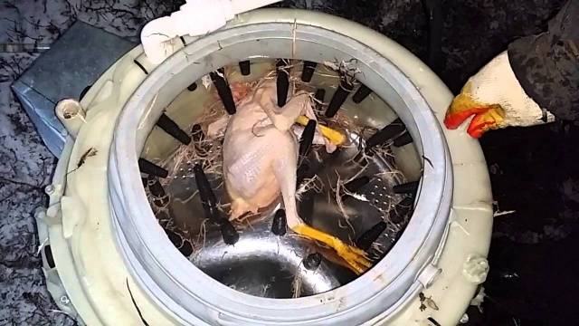 A gépdob és az alja között nincs merev kapcsolat. Ezek különálló mozgatható elemek. A szerkezet alján egy speciális tálca készül. A víz lefolyik benne, és az eltávolított tollak felhalmozódnak. Az egész szerkezet szíve egyfázisú motor, amelynek teljesítménye eléri az 1,5 kW-ot. A motor munkája miatt a belső dob forogni kezd, centrifuga jön létre, és a tetem belül forog. Mivel pedig alulról és a falakból gumigujjak vannak beépítve, a csavarás során tollakat szaggatnak a fürjtől. Tehát a folyamat a következő: