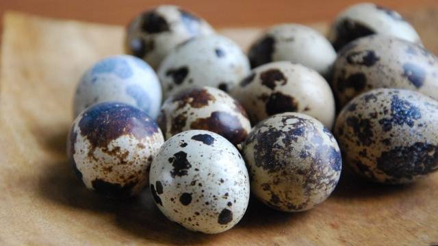 A kaliforniai meztelen fürj tojásai körte alakúak, teljesen sötét színű, sokszínű foltok borítják, mint ezen a fotón.