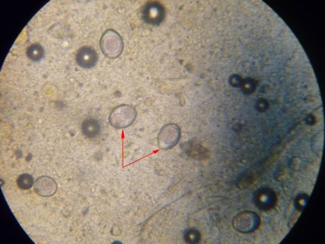 Az eiméria fotóján mikroszkóp alatt.