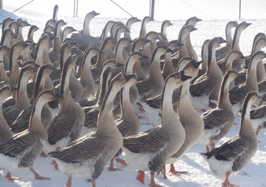 Amint a fotón látható, a Kuban faj libái tökéletesen tolerálják a teleket, nyugodtan járnak közvetlenül a hóban.