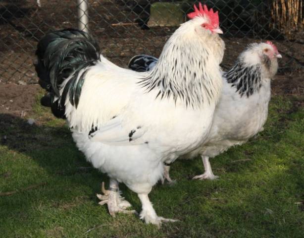 Amint a fotón látható, a fehér szín tiszta fehér, végül is nem az. A csirkék sörényében a tollak fekete szegéllyel és fehér tengellyel, a farokban a tollak tiszta fekete színűek.