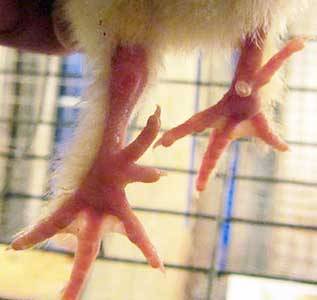 A madarak, mint minden önbecsülõ csirke, három ujjal járnak. Az extra lábujj a lábközép hátsó részén nő, a negyedik mellett.
