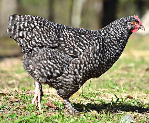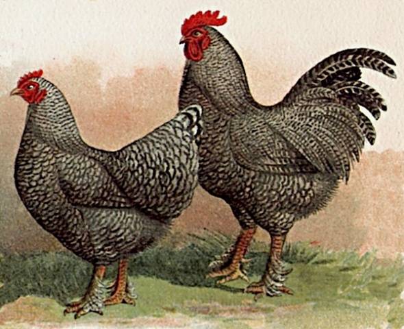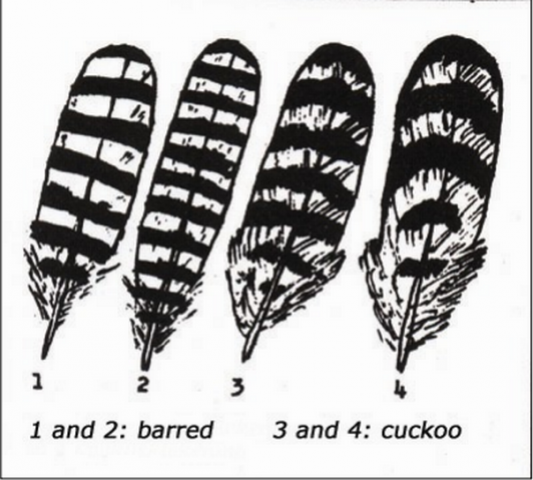 A csirkék tollazata vastag és sűrű. A fajtában a leggyakoribb tarka szín, amely nyugaton két típusra oszlik. Különböznek a repülési tollakon váltakozó fekete és fehér csíkok vastagságában és számában.