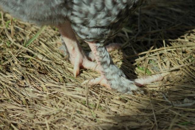 A mecheleni kakukkfajta lábainak fényképén jól látható, hogy pontosan hol kell növekedniük a lábközépcsont tollain.