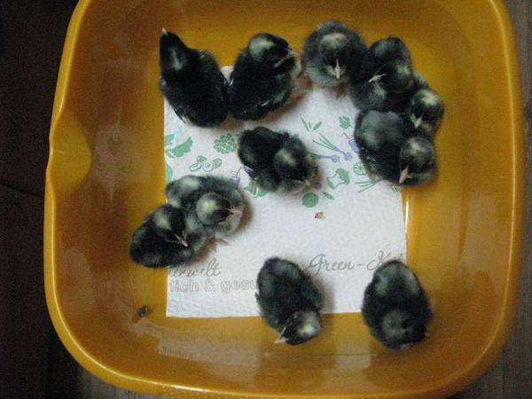 Most a mecheleni kakukktojás vásárlásának problémája nem olyan éles, mint néhány évvel ezelőtt. Lehetővé vált Oroszországban történő vásárlásuk, ahol elsősorban a tarka fajtát tenyésztik. Mert valaha így szállították. Még a sárga csirkéket is gyakran szürke toll borítja. De a szokásos tarka szín sokkal kényelmesebb a tenyésztéshez, mivel ezek a csirkék autoszexuálisak.A mecheleni csirkefajtájú csirkék leírása és fényképe lehetővé teszi egyértelmű megkülönböztetést az egynapos kakasok és tyúkok között: a tyúkok tisztán fekete hátúak, a kakasok hátulján homályos fényfolt található.