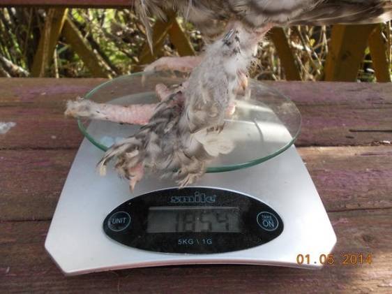 A fotón egy 2 hónapos csirke lábai láthatók. Az egész csirke nem fért bele a keretbe.