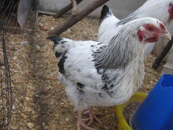 A Pervomaisky csirkefajta ezen kakasának fotóján két hátrány van, amelyek miatt a fajta áttekintése valószínűleg nem lesz hízelgő: sötét tollak a testen és fehér-rózsaszín lábközép. Nagy valószínűséggel a kakas más vérrel keveredik, ami azt jelenti, hogy a belőle származó utód nem lesz fajtatiszta.