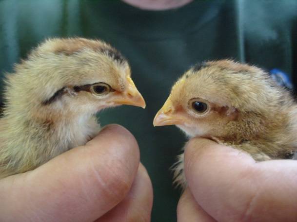 A nőstények sötétebb színűek a fej V alakú foltján, a hátán pedig csíkokkal. A heteroszexuális csirkék összehasonlításakor, mint a fotón, ez jól látható. De ha csak egy csirke van, akkor a "szemceruzára" kell összpontosítania.