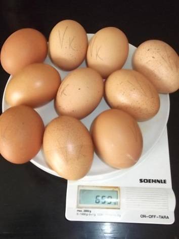 A szlovák walesi tojások súlya megfelel a deklaráltnak, de a színe nem barna, hanem bézs. Bár a foltok még mindig láthatók.