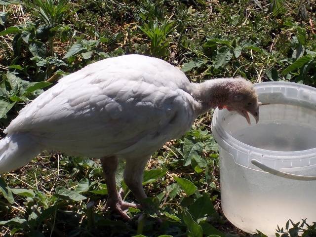 Ha meleg van, a pulykák átfordíthatják az ivótálakat, hogy kihűljenek. Ennek elkerülése érdekében telepítheti tartályokat vízzel a madarak fürdésére nyárra.