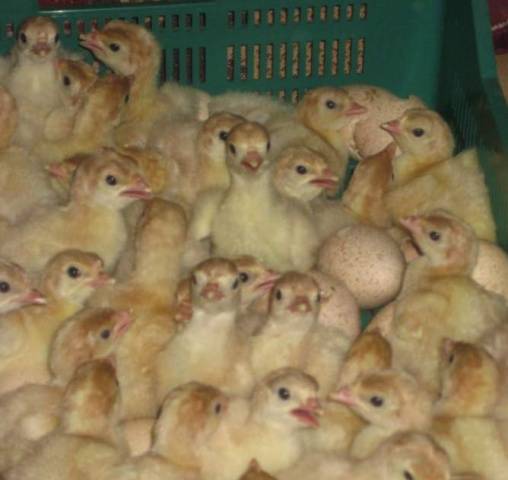 A keltető csibék hasonló problémákkal küzdenek. Az egész megvásárolt tétel gyakran kihalhat. A fertőzéstől. Ugyanakkor a saját termesztésű, nem fertőzött pulykák túlélési aránya szinte száz százalékos, minimális figyelemmel rájuk. Azok, akik meghalnak, kétségeket ébresztenek akkor is, ha kikelnek a tojásból, mivel nyilvánvalóan túl korán kelnek ki, és a tojásban nagyon nagy emésztetlen sárgája figyelhető meg. Egy ilyen pulyka nagy valószínűséggel meghal.