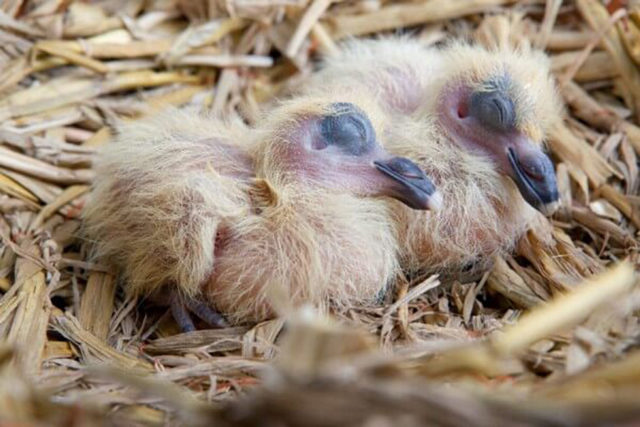 Miután a nőstény elfogadta a hím ajánlatát, párzásra kerül sor.Ezután az ifjú házasok együtt fészket építenek egy fa koronájába, amelyet a galamb féltékenyen őrködik más madarak elől. A galamb két fehér tojást rak. Mindkét szülő részt vesz az inkubációban. 2 hét után vak csibék jelennek meg. A szülők madártejet adnak nekik a golyvájukból. Gazdag fehérjében és mindenben, ami az újszülöttek életéhez szükséges.