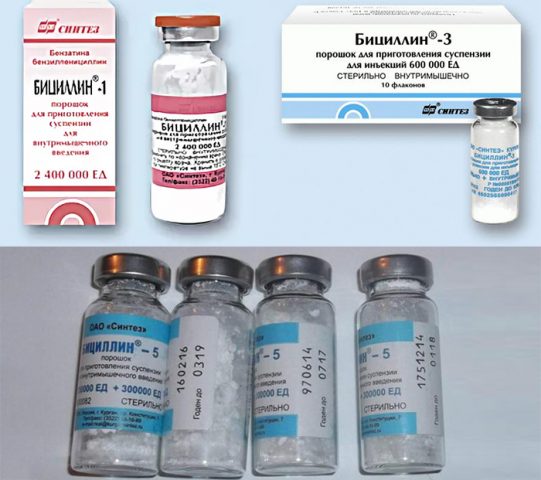 - Bitsillin-1 - benzatin-benzilpenicillin összetételében. Üveg por 300, 600, 1200 ezer egység 10 és 20 ml. Fehér por, szagtalan, ízű, hajlamos a hosszú távú tárolás során összetapadásra. Stabil szuszpenziót képez vízzel és sóoldattal.