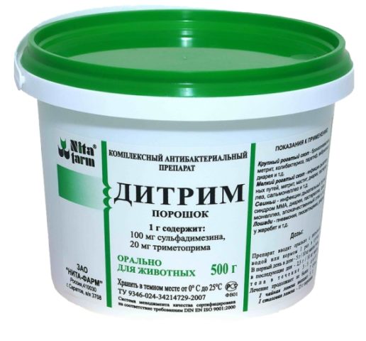 - "Zinaprim": 200 mg szulfametazint és 40 mg trimetoprimot tartalmazó komplex antibiotikum. Szinte minden olyan betegség kezelésére használják, amely emésztőrendszeri rendellenességeket okoz. A kúra 3-5 nap, az adag 1 g / 10 kg élősúly. Borjak esetében a hasmenéses "Zinaprim" port meleg vízben feloldják és forrasztják az egyik etetés helyett.