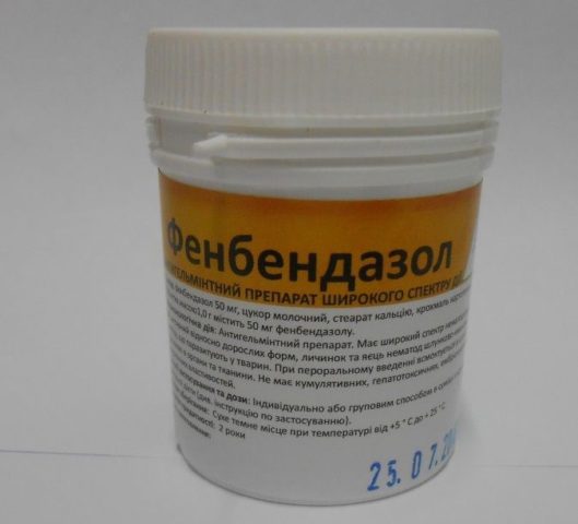- Oxfendazol (sistamex). 4,5 mg / kg szájon át.