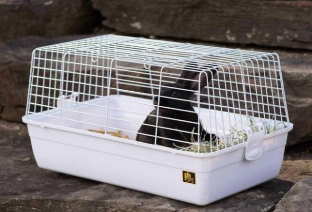Az előregyártott ketreceket gyakran már beépítve értékesítik. A tulajdonosnak csak oda kell tennie a nyulat, és enni kell neki.