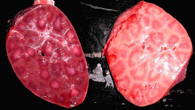 A leptospirosis különösen erősen tükröződik a tehén májában (fotó). Jelentősen megnőtt a térfogata, az élek kissé lekerekítettek. Ebben az esetben a szerv színe sárga, a membrán alatt vérzések és nekrózis gócok láthatók. A tehén veséje is megváltozik. Boncoláskor szembetűnő vérzések és váladék észlelhető. A hólyag erősen kitágult és tele van vizelettel. Az epehólyag barna vagy sötétzöld színű.
