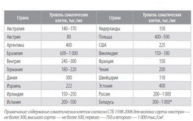 A GOST változásainak bevezetése előtt a legmagasabb osztályú tej megengedte a szomatikus anyagok tartalmát 400 ezer / 1 ml szinten. A követelmények szigorítása után 2017-ben a mutatók nem haladhatják meg a 250 ezer / 1 ml-t a magas osztályú tej esetében.