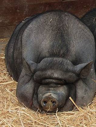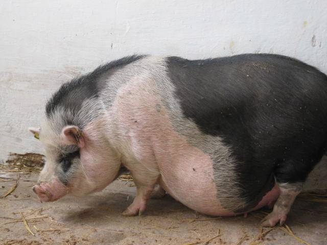 A fotón egy kövér, pocakos disznó látható, amelyik a fialás és a malacok etetése után fogy.