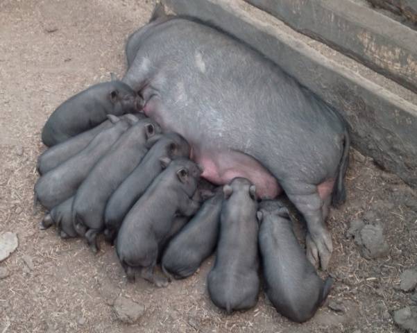 Igaz, egy hónapos korig pocakos malacok, felosztva az anya mellbimbóit, olyan vicsorgást keltenek, hogy az embernek az a benyomása támad, hogy élve megeszik őket, és a hátsó lábukból indulnak ki. Egy hónap múlva, amikor a malacok önállóan kezdenek enni, abbahagyják a nyikorgást.De a vietnami sertések anyja legfeljebb két hónapig szopik, ezért egy hónap alatt még korai leszakítani őket az anyáról. A vietnami edénybél gyakran a korai elválasztás miatt hal meg.