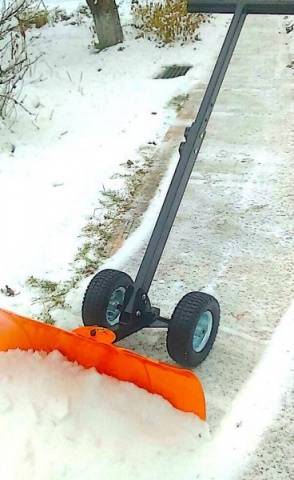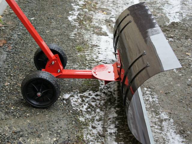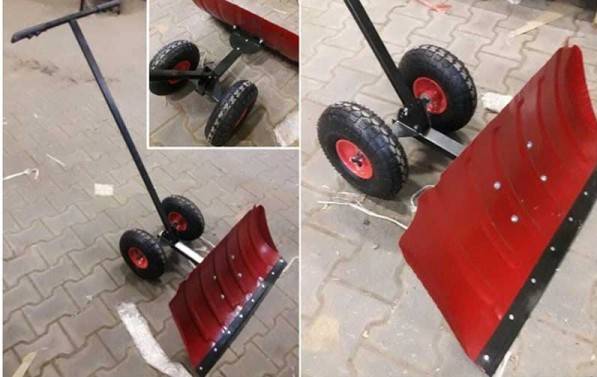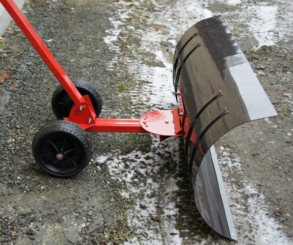 - négykerekű lapát a hóeltakarításra gyakran mini buldózernek hívják. Fém vázból áll, mindkét oldalán egy kerék. A jármű előtt egy nagy fém penge van. Beállíthatja a penge dőlésszögét, ezáltal az egyik vagy másik irányba havat gyűjtve a berendezésből. A nehéz négykerekű szekér nedves és összepakolt hóval is képes lesz dolgozni.