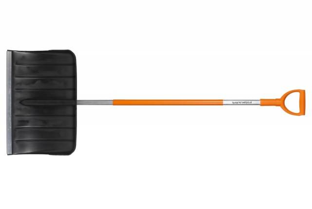A hóeke modellje a SnowXpert vonalhoz tartozikTM... A fogantyú kiváló minőségű alumíniumból készül, narancssárga műanyag bevonattal. A széles hegy lehetővé teszi a fogást egy kézzel egy vastag kesztyűben. A kanál tartós polipropilénből készül és acélrudakkal van megerősítve. A szerszám hossza - 152 cm, a kanál szélessége - 53 cm. Súly - 1,6 kg.