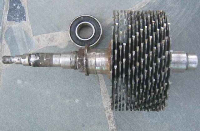 A tengelyt esztergán forgatják. Szükség van az anyák meneteire a fűrészkészlet és a munka tárcsa rögzítéséhez. A tengely mindkét végén a csapágyak vannak megmunkálva.