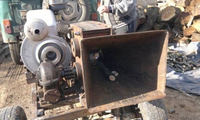 A fűrészkészletből készült aprítógép minden szerves anyaggal megbirkózik. Az aprítót azonban gyakran kell tisztítani.