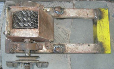 Az aprító garat acéllemezből készül, amelynek vastagsága legalább 1 mm. A vékony ónt nem érdemes venni, mert deformálódni fog a repülõ forgács ütéseitõl. A garat magassága nagyobb, mint a karok hossza. Ez a személyes biztonság érdekében történik.