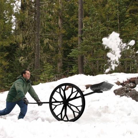 A kerékkaparó másik változatát nem olyan régen találták ki Európában. Kialakítása csak egy nagy átmérőjű kerékről rendelkezik. A tengelyéhez egy fogantyú egy csukló segítségével van rögzítve. A hó összegyűjtésére szolgáló vödör a fogantyú egyik végén van rögzítve, a másik végén pedig egy fogantyúval. A fotón láthatja az ilyen szerkezetet és működésének elvét: