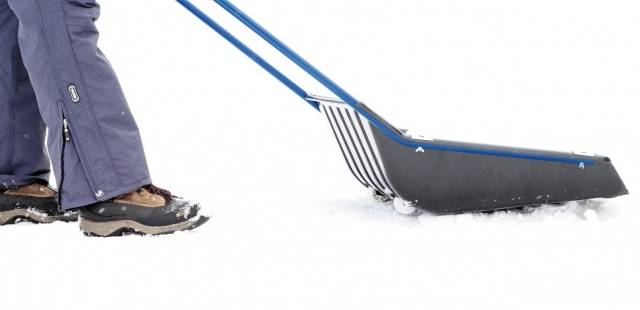 Leggyakrabban a műanyag kaparók apró kerekekkel vannak felszerelve, amelyek a lapát kissé megdöntésével segítik a havat a gyűjtésből a tárolásba. Az alábbi fotón látható egy ilyen kaparó kis kerekeken: