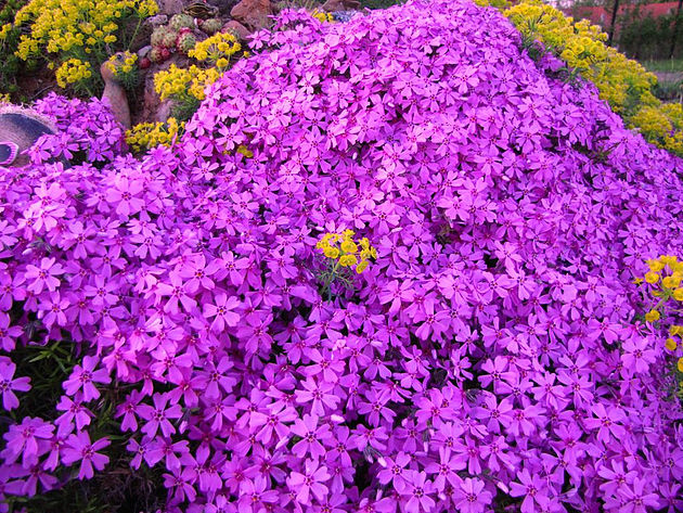 - Phlox subulate - egy virág, amely egész orgona, fehér vagy orgona sapkát hoz létre.