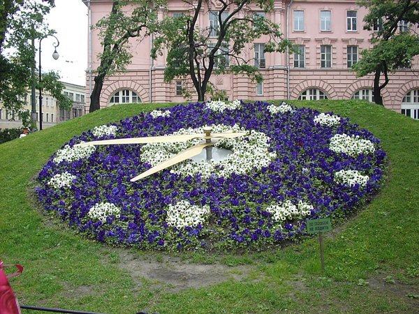 A virágórák már nem ritkaságok a kerttervezésben. Ez a színkombináció azonban különösen figyelemfelkeltő: