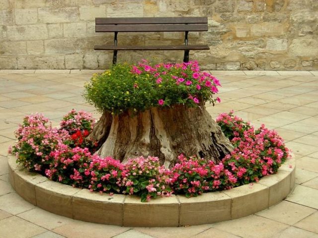 Eredeti fotóötletek kerek virágágyások díszítéséhez