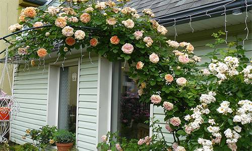 A Rambler a bozótokkal ellentétben egyáltalán nem létezhet támogatás nélkül. Ágai túl vékonyak ahhoz, hogy önállóan állhassanak. Ezek a bokrok akár 4-5 méteres magasságig is megnőhetnek, így könnyen alkalmazkodnak bármilyen támaszhoz, még a legösszetettebb szerkezethez is. Ezeknek a növényeknek általában apró virágaik vannak, de nagyon bőségesek és sokáig virágoznak.