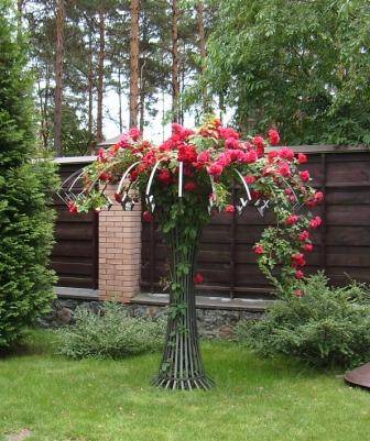 Az ív alapjához megbízható anyagot kell használni, gyakran betonnal rögzítik őket a földbe. Továbbá boltozatot építenek, vagy rácsot tesznek, ha pergola. Az oszlopok magassága körülbelül 1,8–2 méter legyen. Fém rudakat vagy rúdakat erősítenek rájuk annak érdekében, hogy a jövőben ágakat lehessen hozzájuk rögzíteni. A pergola építéséhez fa rácsot vagy kötélhálót használnak. Miután elkészített egy ilyen szerkezetet, ősszel sokkal könnyebb lesz eltávolítani a bokrot, mert egyszerűen eltávolítják a rács mellett.