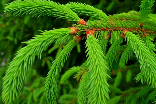 - a tűk zöldek, világosabb monokromatikus színben különböznek a fenyőtől;