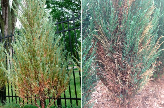 A Blue Arroy sziklás fajta ellenáll a legtöbb betegségnek, de előfordulnak fertőzések. A fák számára a legnagyobb kárt okozó leggyakoribb betegség a rozsda, egy gombás fertőzés. A betegség jelei a narancssárga színű sajátos növekedések, amelyek a fa ágain jelennek meg. Ugyanakkor a Blue Arrow boróka kiszárad és elveszíti vizuális vonzerejét.