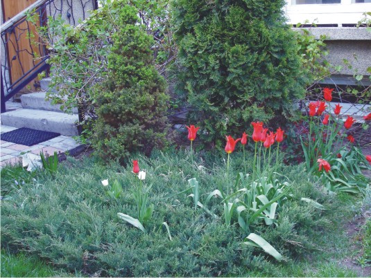 - ültessen a közeli, színének megfelelő növényeket (például kékes-kék tűkkel rendelkező boróka mellé rózsaszínű, sárga vagy arany lombú cserjéket kell ültetni);