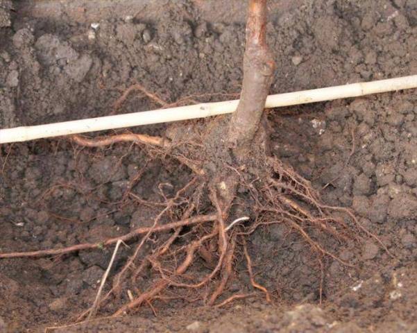 - A nyitott gyökérzetű palántákat gondosan ellenőrizni kell. Az almafa gyökereinek egészséges megjelenésűnek kell lenniük, megvastagodások, szabálytalanságok nélkül, 30 cm hosszúnak. Vágáskor a gyökér színének fehérnek kell lennie. A szürke árnyalat fagyást vagy rothadást jelez.