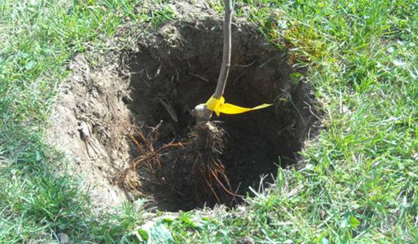 - 2 hét után folytathatja az almafa ültetését. Ehhez a még laza talajban egy kis lyukat kell készítenie, amelynek mérete megfelel a gyökerek méreteinek.