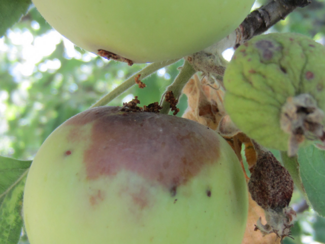 A levélhullás után vizsgálja meg a fákat a nagy ágak és törzs kérgén jelentkező betegség jelei (citoszporózis, fekete rák) területén. Helyi kezelésekre lehet szükség. A lisztharmat, a barna folt és a varasodás spóráinak elpusztításához permetezzünk az almafára fungicideket.