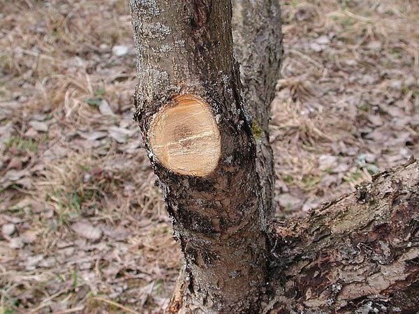 Annak érdekében, hogy ne károsítsa a növényt, ajánlatos először az aljára metszést végezni az ágon, majd felülről teljesen levágni az ágat. Ebben az esetben az ág saját gravitációja alatt eltörik, anélkül, hogy letörné a csomagtartón lévő kérget.