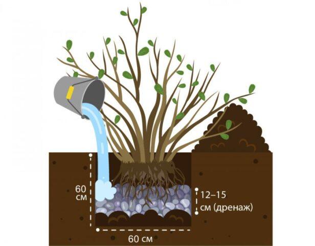 - A megtermett bokrokat csak a száraz évszakban kell öntözni. Hetente 3-4 vödör vizet kapnak. Ha időszakosan esik, nincs szükség további nedvességre.