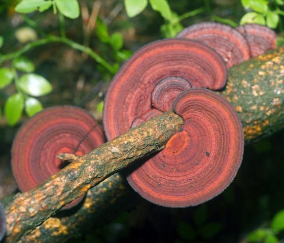 - a himenofor lamellás, elágazó, a lemezek elrendezése ritka, a növekedés kezdetén a szín bézs vagy fehéres, idővel világosbarna lesz, vöröses árnyalattal és ezüstös árnyalattal;