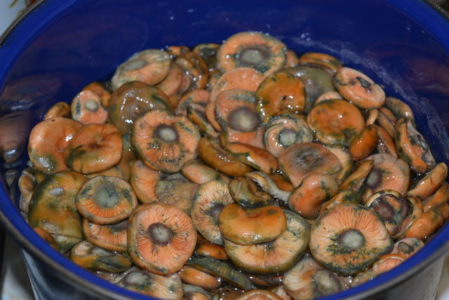A Camelina gomba feldolgozása után gyakran zöldell. Ez egy természetes folyamat, amely nem befolyásolja a termék minőségét és ízét. Ezért ne féljen a színét megváltoztató példányoktól. Ha a gyümölcstest jó minőségű és sérülésmentes, akkor gyűjtésre és feldolgozásra kerül.